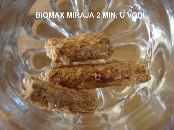 Biomax Miraja pelet odbija da nabubri u vodi.