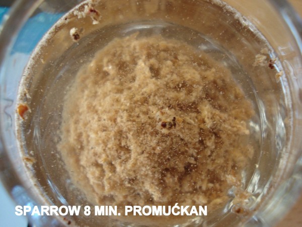 Posle 4 minuta promućkao sam pelet u čašici vode.